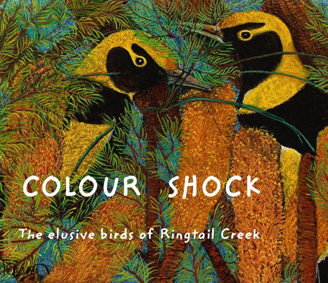 An illustrated 'coffee-table' book (large landscape format) detailing exotic Australian native birds with a gentle conservation message